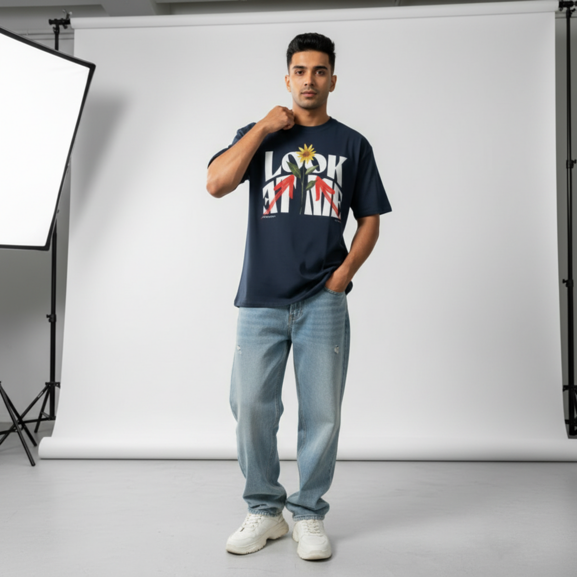 Stand out without trying — introducing the LOOK AT ME Oversized Unisex Graphic Tee from The Balmy Club.